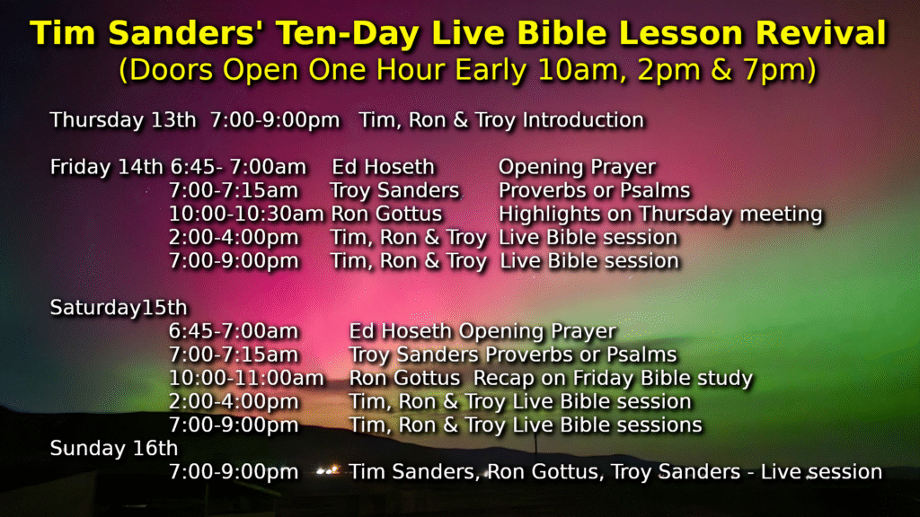 Join us for Ten Exciting Days Exploring the Original Hebrew Meanings behind the scriptures while you bask in the Presence of the Holy Spirit with the Dynamic Teaching of Tim Sanders, Ron Gottus and Troy Sanders.